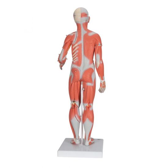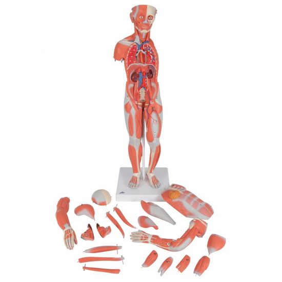 This female muscular figure displays human anatomy in a convenient size. This 84 cm high human muscular figure is perfect for demonstrations of human musculature and anatomy. Exquisitely hand-detailed and complete with 21 removable parts, this human muscular figure represents fine quality at a more affordable price. Painted by hand in realistic s, this human anatomy model comes complete with stand and detailed multilingual product manual.