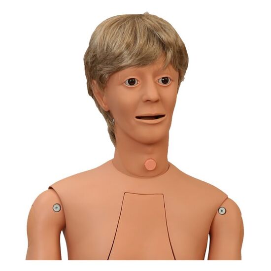 Build and evaluate patient care and nurse aid competencies! The Patient Care Manikin PRO for simulation in healthcare was developed for scenario based training of patient care and advanced nursing skills. The patient care manikin simulates an adult, life-size patient, with interchangeable genitals. It can be positioned like a real patient with natural movement of the arms, legs, and joints. You can even make the patient care manikin sit upright in the bed for treatments. It is made of durable, unbreakable, and water-resistant plastics for longevity in the everyday training use