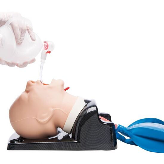 The addition of a “real-feel” skin covering provides a more realistic bag mask ventilation training experience. AirSim Advanced features an improved neck design allowing for accurate articulation.