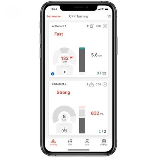 The Instructor App provides a detailed performance review of up to six manikins at a time while the Student App enables trainees to directly see and monitor their CPR performance in real-time.
