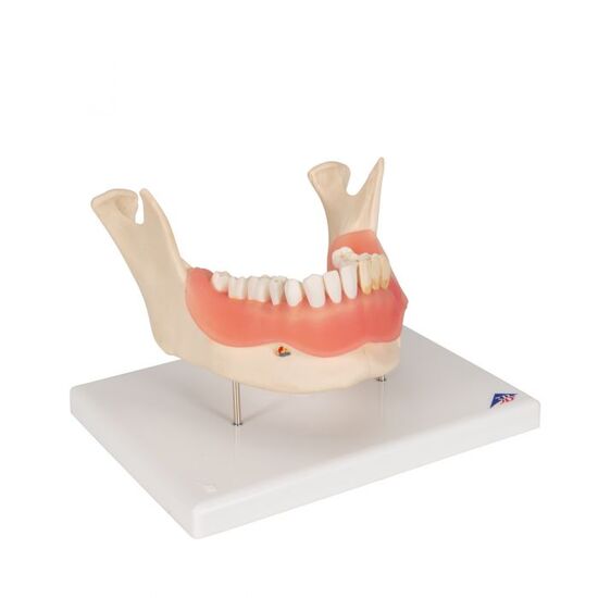 The dental disease model is based on a lifelike illustration of a lower jaw with 16 removable teeth of an adult magnified two times.