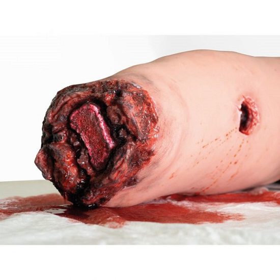 1. Trauma leg with 3 different traumatic wounds, choice of light or dark skin