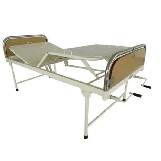 Four Pieces individual side rails , ABS Moulded. ABS Moulded Head and Foot panel with locking and corner buffer. Four Pieces individual side rails , ABS Moulded. Heavy ABS Head and Foot panel with locking and corner buffer. ABS moulded. Head & Foot Panels. Frame work made of Rectangular M.S. Tube. 4 section top made up of Oval perforated CRCA MS Sheet. Bed Mounted on 5″ Dia Castor. Holder for Urine bag. Four Location for IV Rod.