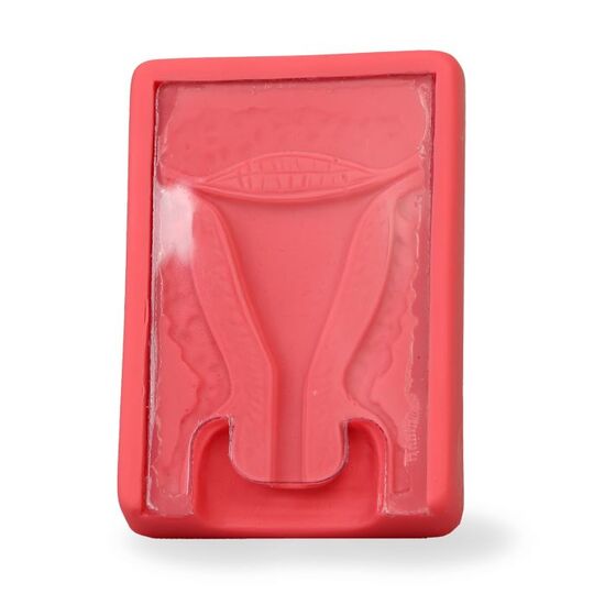 This anatomically accurate model represents a section of the uterus, ovaries and fimbrae. The uterus is covered by a clear plastic window to allows easy visualization of insertion and placement of I.U.D. (I.U.D. not included)