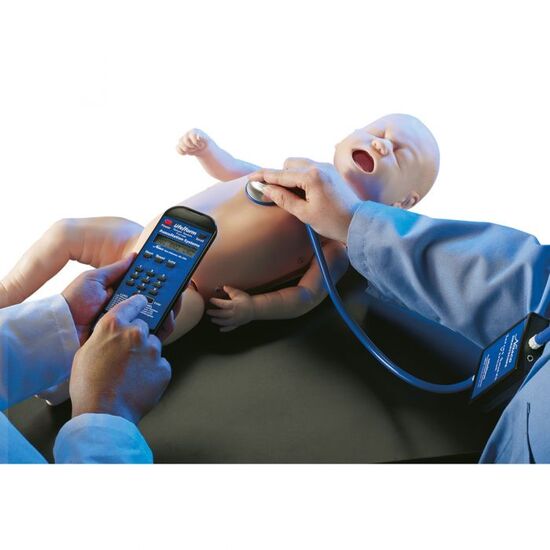 The Life/form Infant Auscultation Trainer simulates heart, bowel, and lung conditions selected by the instructor via wireless remote control. The student must palpate to identify the correct auscultation site and will hear different heart, bowel and lung sounds as the SmartScope is moved from site to site. The instructor can program the remote control, selecting from two dozen conditions and even switch conditions so the students can compare and make a diagnosis. Includes Infant Auscultation Trainer, SmartScope, remote and hard carry case.