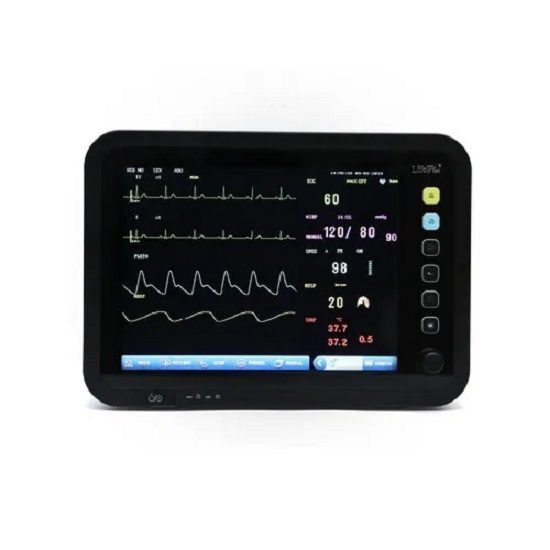 12.1″ color TFT display with maximum 7 waveform, Parameters including ECG, RESP, SpO2, NIBP, TEMP Pulse Rate, Built-in recorder and rechargeable battery, 96 hours trend and data storage; 3-level audio & visual alarm of all the parameters, Multi-language version available, Application for Adult,Pediatric and Neonatal