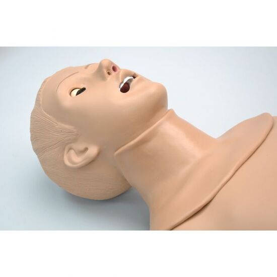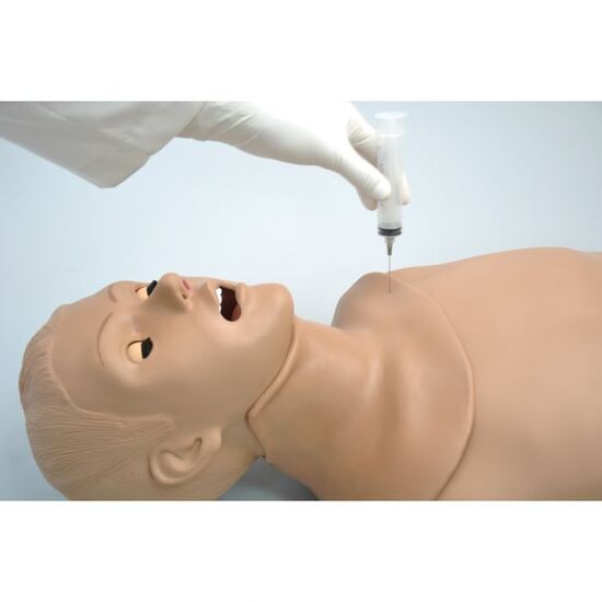 Using the HAL , train participants to recognize laryngspasm and if needed, perform an emergency tracheotomy or cricothyrotomy. Additionally, to improve CPR training, add the OMNI Code Blue Pack option to view real-time CPR quality feedback via the handheld OMNI controller and PC link software. Product shown with optional OMNI system.