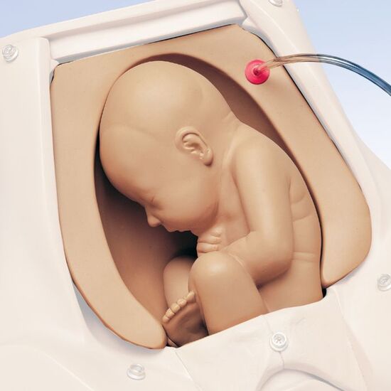 This module consists of a fetus, 2 cushions which my be inflated with air and an inflation device. Inflation of the lower cushion raises the fetus to desired position; inflation of the upper cushion creates a firm abdomen as in the ninth month of pregnancy. The fetus with palpable fontanelles, spine, shoulders, elbows, and knees may be placed in normal, breech, or transverse position and will be cradled between the 2 cushions