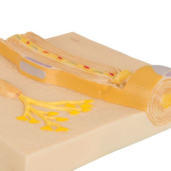 This section of the nervous system depicts a Schwann cell with a sectioned core. The model depicts the Schwann cell in full anatomical detail. The Schwann cell model is a great addition to any lesson on the human nervous system.