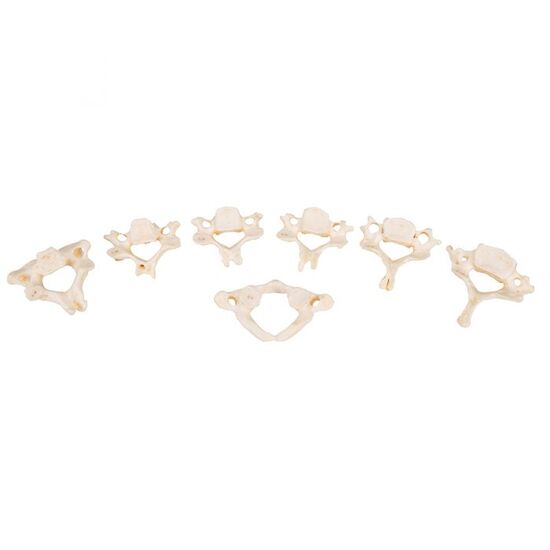 This set is a worldwide unique original anatomical replica of a human vertebrae with the most precise illustration of even the finest anatomic structures of the vertebrae, exhibiting excellent quality. The vertebrae set includes the 7 cervical, 12 thoracic and 5 lumbar vertebrae. The spinal vertebrae set of models includes the following features: