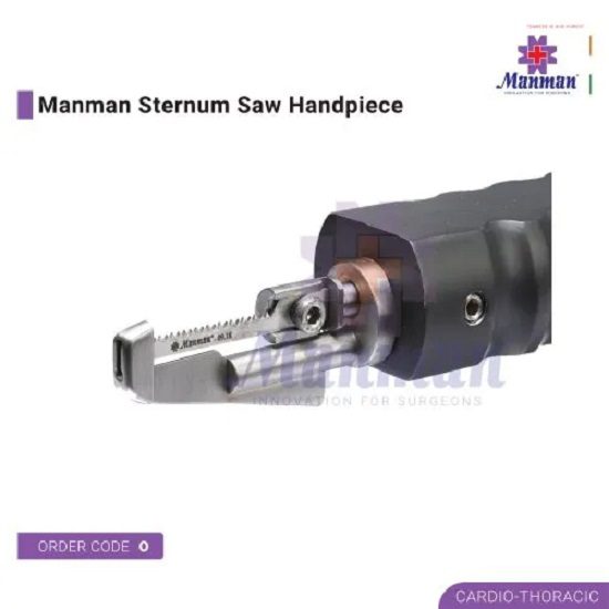 Reciprocating type straight blade. Light weight and ergonomic design for Sternotomy. Pediatric type blades available against request. Smaller anchors provided against request. Reciprocations adequate for a clean cut. Autoclave and ETO friendly under standard conditions.