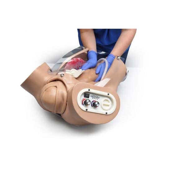 This battery powered birthing simulator offers more than 30 hours of operation and uses durable materials for years of usage.